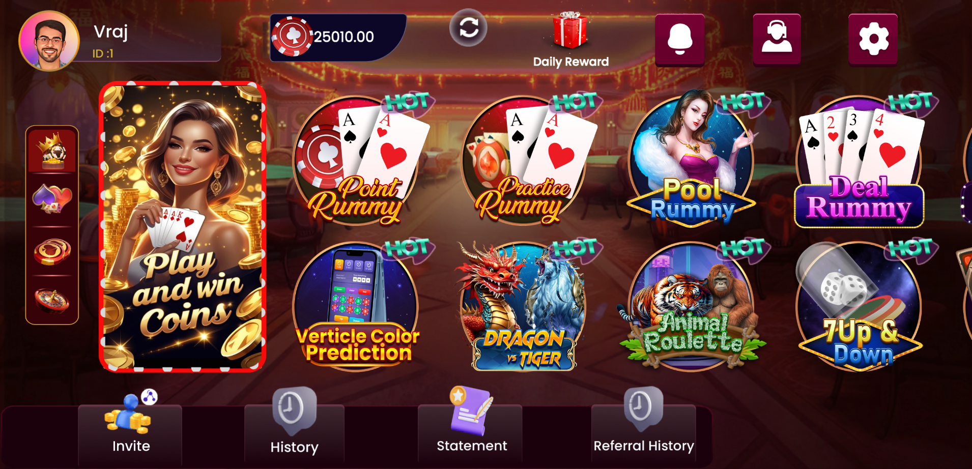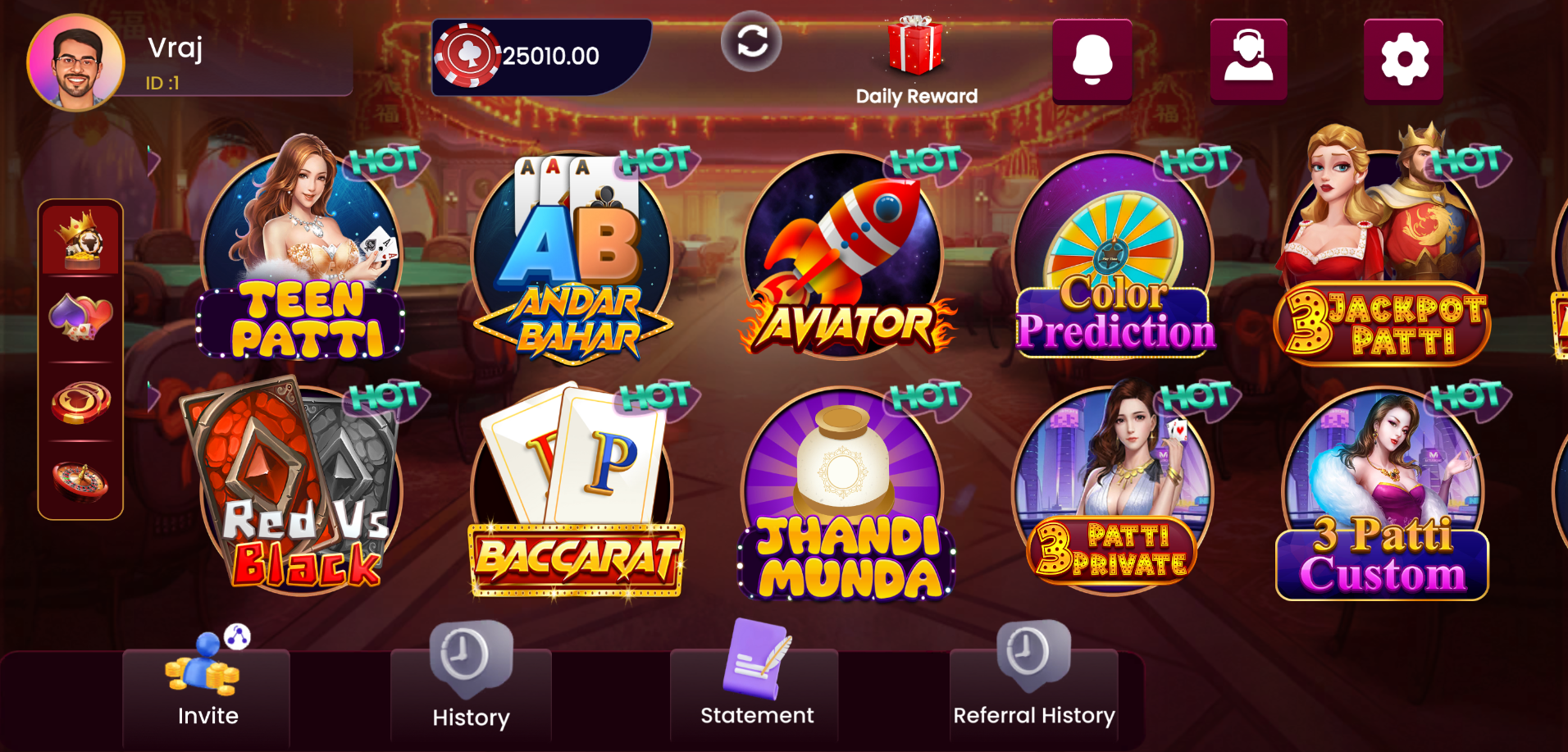 Daily Bonus: Claim Free chips everyday in Teenpatti Kuber. Win a daily bonus of up to ₹30,000 in chips!